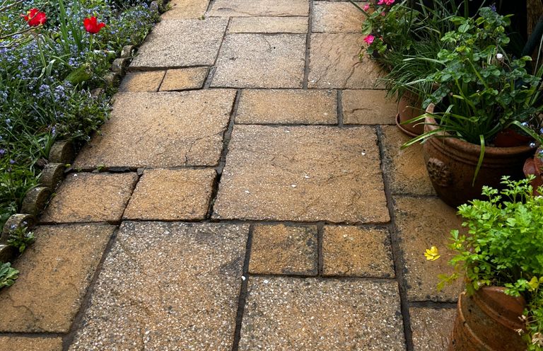 High pressured washing with water of patios and driveways.