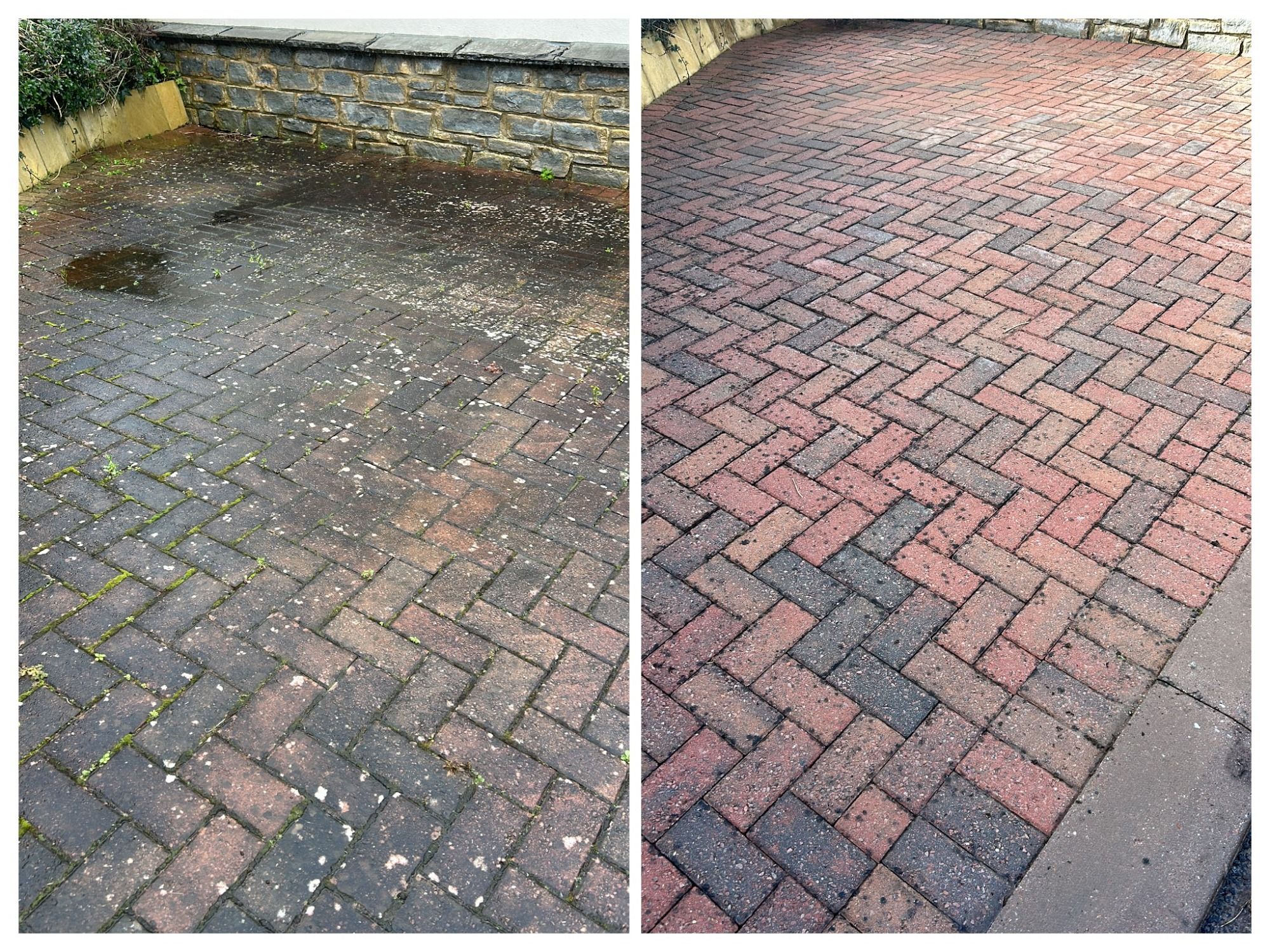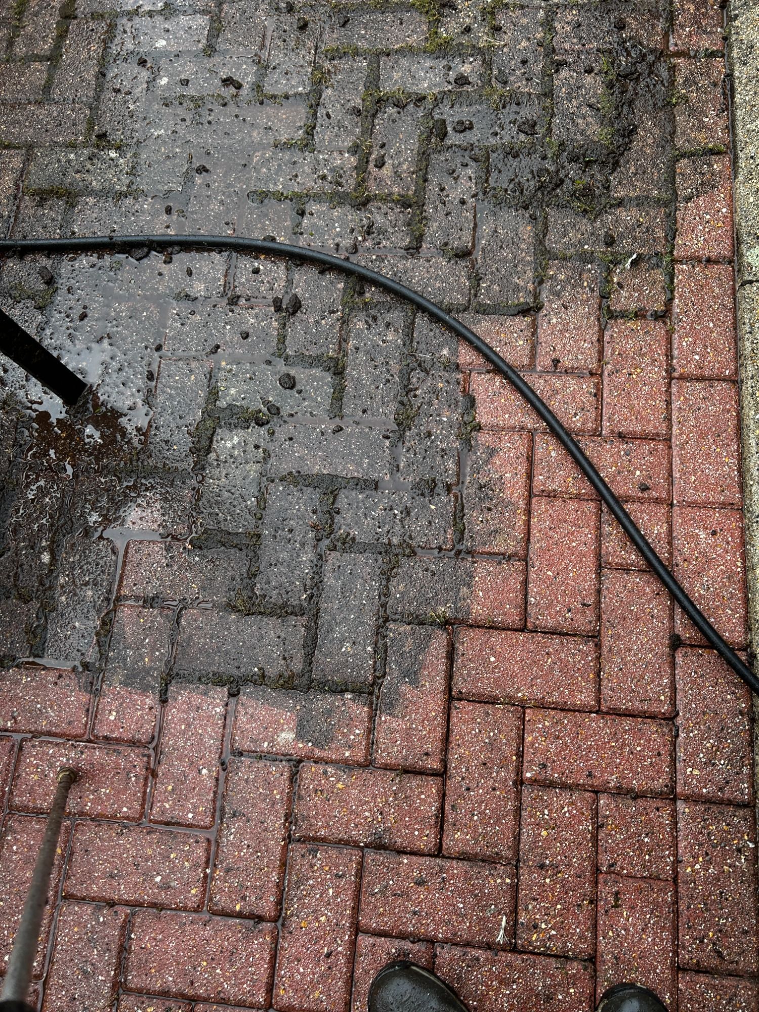 Part way through pressure washing driveway, lovely brickwork in Newton Abbot